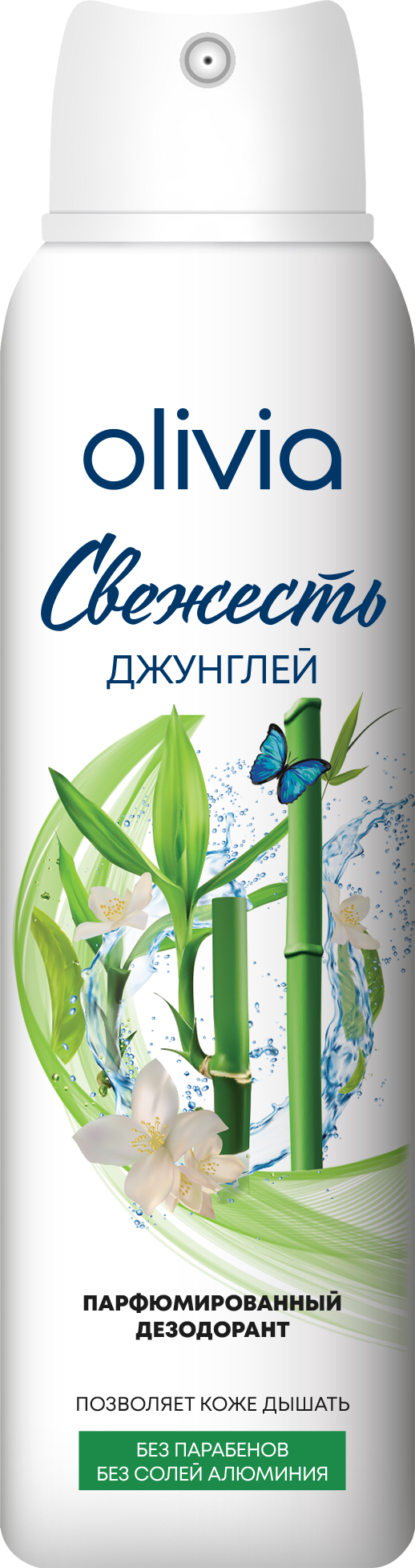 Парфюмированный дезодорант для тела «Свежесть Джунглей» от Olivia обеспечит свежесть и комфорт на весь день.